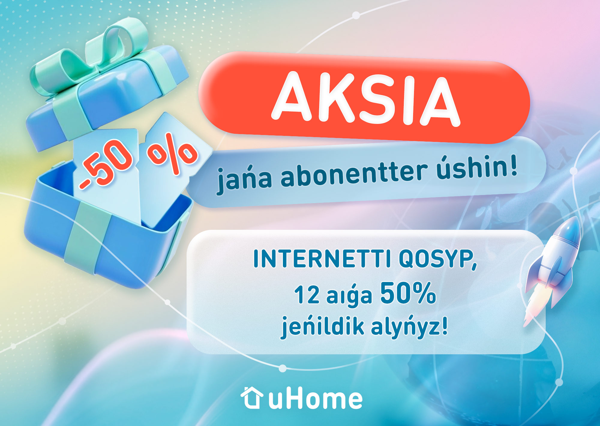 Úıdegi Internetti qosyp, 12 aılyq tarıfke -50% jeńildik alyńyz. Naýqan...