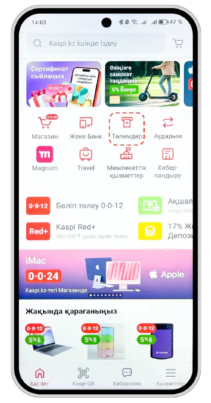 Qoldanbany ashyńyz Kaspi.kz smartfonda