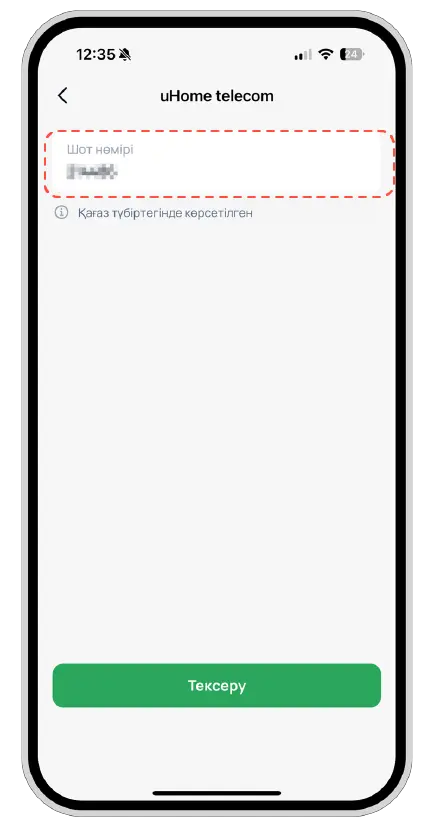 Jeke shottyń 6 tańbaly nómirin engizińiz (sizdiń kelisimshartta nemese jeke kabınette kórsetilgen)