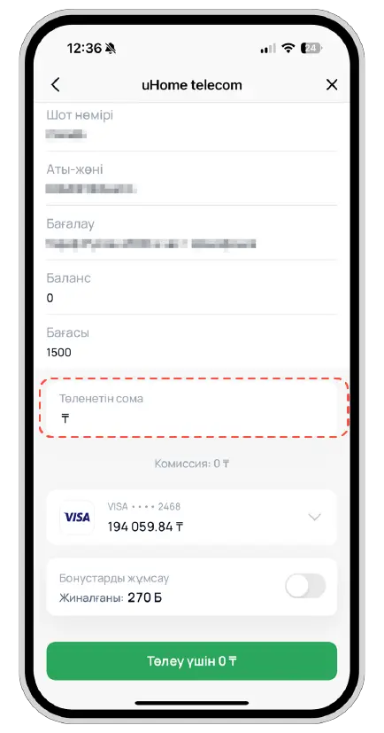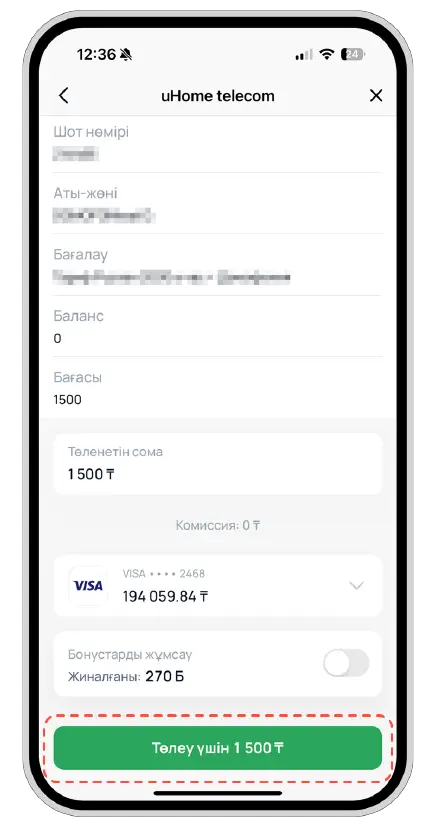 «Tóleýge» túımesin basyp, tranzaksıany rastańyz